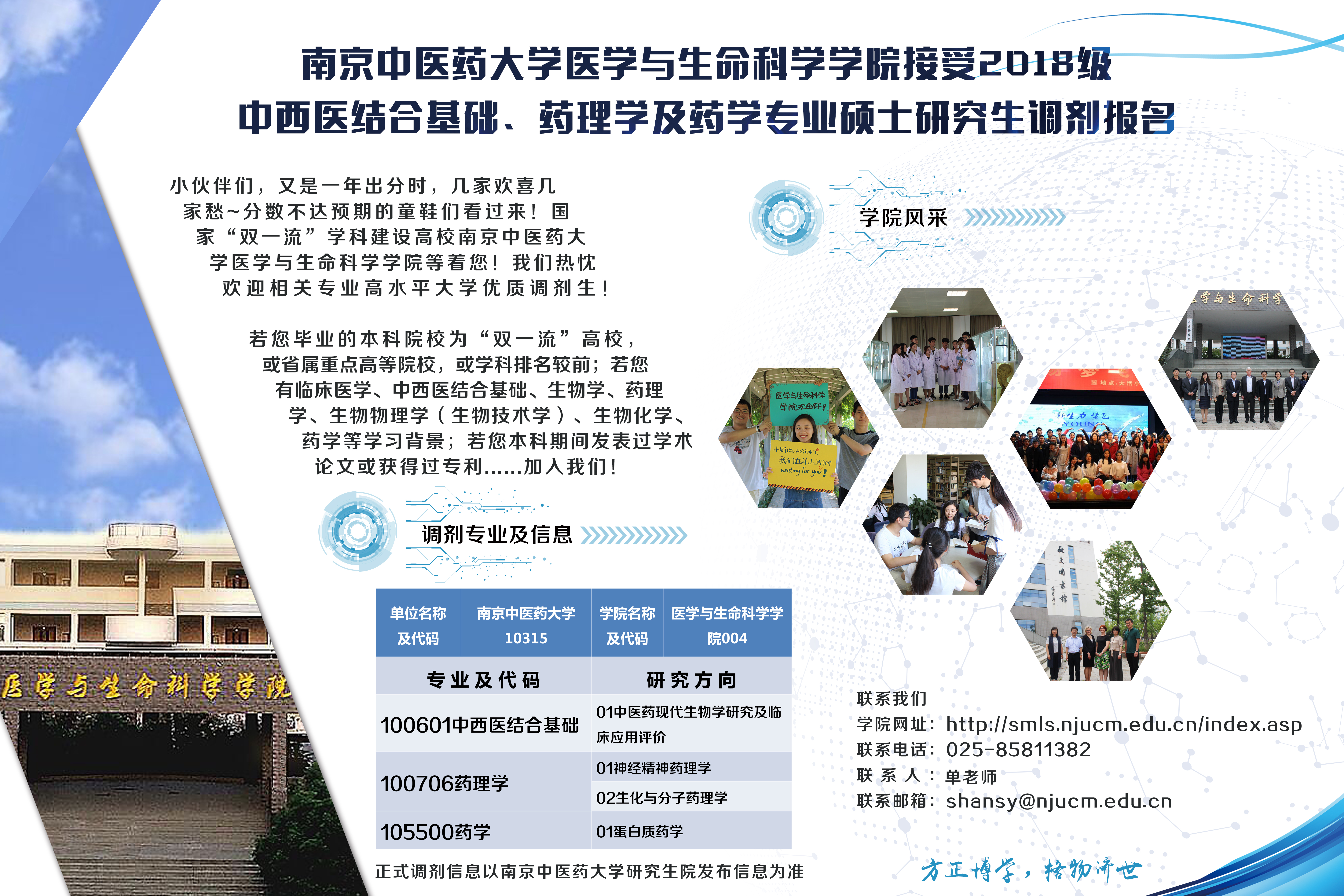 sunbet申搏医学与生命科学公司接受2018级中西医结合基础、药理学及药学专业硕士研究生调剂报名