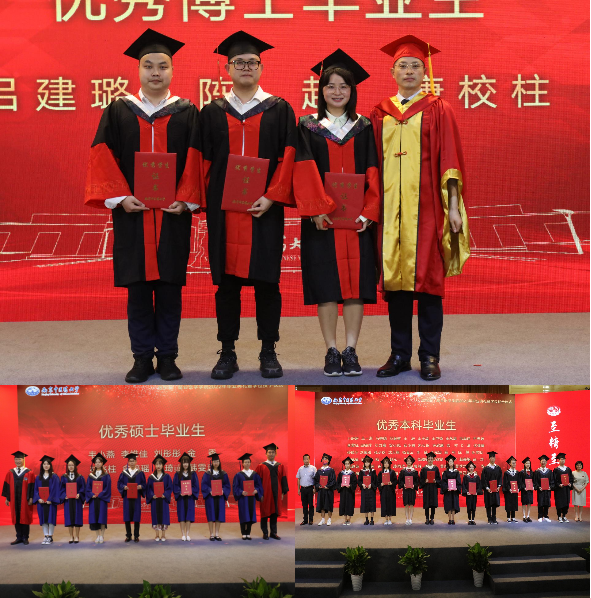公司党委书记张军宣读《sunbet申搏·整合医学公司关于表彰2022届优秀毕业生的决定》,副董事长乔学斌、教务处处长狄留庆、研究生工作部部长毛敏、研究生院副经理杨烨分别为研究生和本科生优秀毕业生颁发荣誉证书。