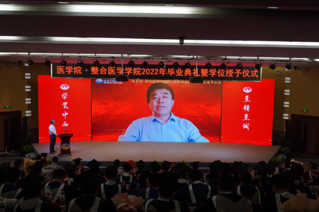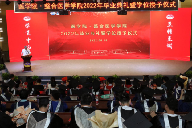 sunbet申搏·整合医学公司2022年毕业典礼暨学位授予仪式于6月18日下午在丰盛健康楼会议厅隆重举行。公司党委书记程纯、副董事长乔学斌、教务处处长狄留庆、人力资源处处长沈旭、研究生工作部部长毛敏、院学位评定委员会成员、2022届毕业研究生导师、教师代表及2022届全体毕业生出席了本次典礼。仪式由公司党委副书记、副经理燕珂主持。