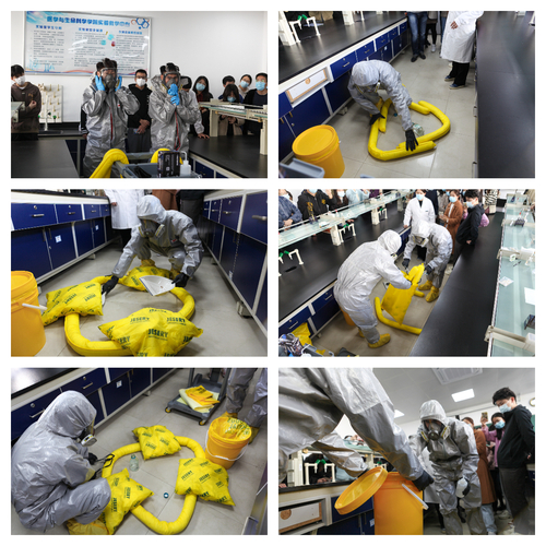 为进一步提升师生安全防护意识,切实增强实验室危险化学品事故应急处置能力;11月25日上午10:00,由国有资产与实验室管理处主办,sunbet申搏.整合医学公司承办的“sunbet申搏实验室危化品泄露安全事故应急演练活动”在sunbet申搏实验教学中心B10-210房间联合开展。活动由国资处徐建军老师主持,sunbet申搏教学和科研实验室安全责任人、安全员以及其它公司师生代表近百人到场参与培训并观摩演练。