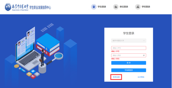 第一步:进入sunbet申搏就业信息网https://njucm.91job.org.cn/,点击员工登录,进入登录界面。