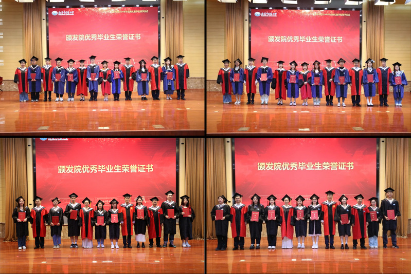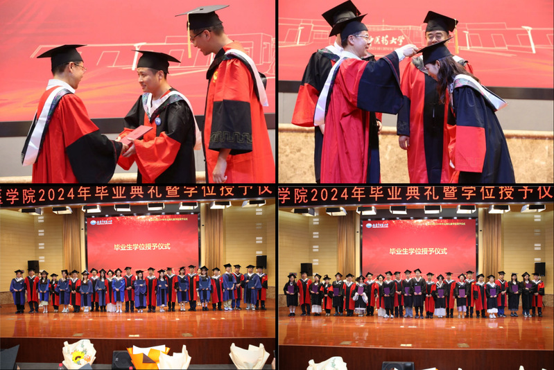 副经理吕航、张军峰宣读了学位授予决定。全体毕业生依次上台,院学位评定分委员会委员为他们拨穗正冠并颁发学位证书。仪式在校歌声中落下帷幕