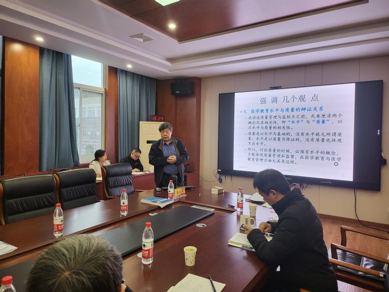 吕航副经理对临床医学专业建设情况做了全方位汇报,吕教授与各学系主任就团队队伍、课程设定等方面进行了深入交流与细致指导。随后,吕教授实地考察了各学系办公室及教学实验中心,并对照认证标准,对教学设施和实验条件提出建设性改进建议。最后,吕教授就临床医学专业认证一般规律与院校迎评准备工作做了专题辅导报告,详细阐述了临床医学专业的培养设置与课程体系,解读了开展临床专业认证的目的、定位、本质、效果。