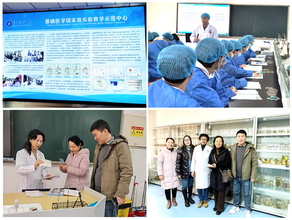 此外,调研组一行还现场观摩了该校《医学微生物学》国家级课程思政教学团队骨干教师王大军副教授的实验课,王大军副教授通过将课程思政元素融入专业教学,生动展示了先进教学手段与专业知识、思政教育的深度融合。在教学资源交流环节,调研组一行还获赠了该校黄菱教师自制的珍贵《寄生虫学》标本片,标本工艺精湛,教学价值突出,充分体现了该校教师求专求精的敬业精神与奉献精神。